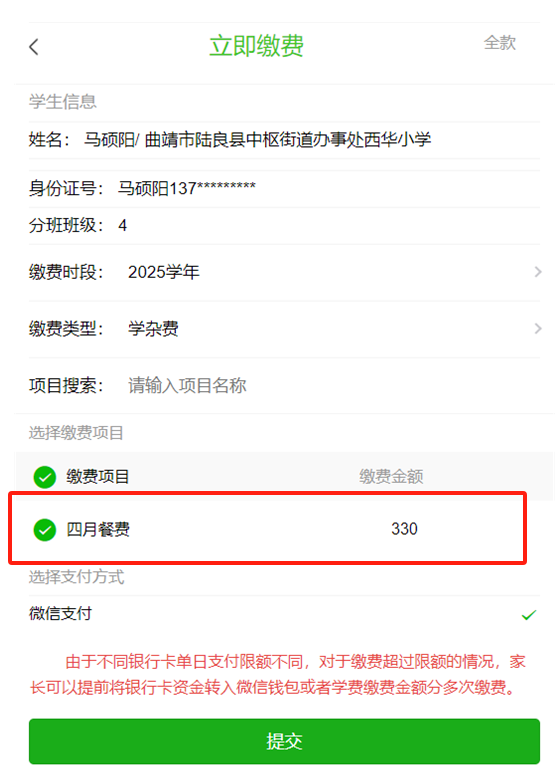 5.缴费时间:家长(学生)、教职工可提前在线预交下月餐费