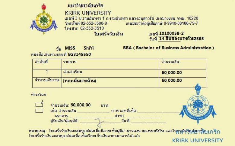 过去,泰国格乐大学在全国各地拥有众多招生站点,纸质票据管理模式弊端凸显。票据需总部统一开具后再邮寄给学生,庞大数量的票据管理复杂且易出错,重复开具现象频繁,核对工作繁琐耗时。邮寄过程中,因学生地址填写错误或票据开具差错导致的退回重寄情况时有发生,不仅增加了学校的邮寄成本,还浪费了大量人力用于跟进处理。对于极少部分需寄往国外的学生,流程更为复杂,而签证版票据更是需要先打印、签字盖章后再扫描上传至大使馆,这一系列操作使老师的工作量剧增,稍有差错便会造成资源浪费与时间延误。
