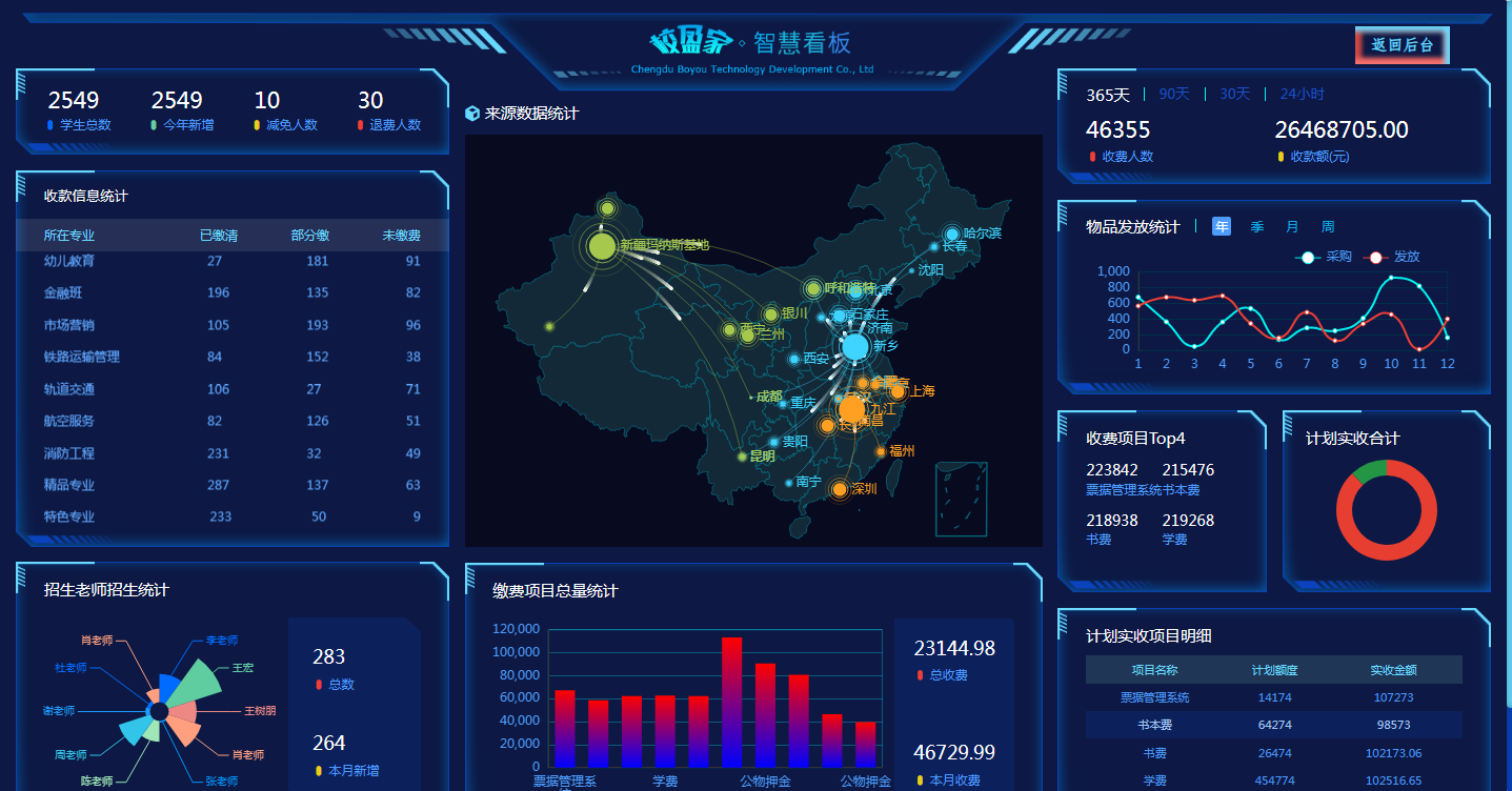 在智慧校园的建设中,数据的收集和分析至关重要。校盈家通过智能化的数据处理和分析功能,为学校提供了全面、准确的数据支持。系统可以实时统计和分析招生数据、缴费情况、学生信息等关键指标,为学校优化资源配置、提升服务质量提供了有力的数据支撑。这种数据化的管理方式,不仅提高了管理的科学性,还为学校的决策提供了依据。