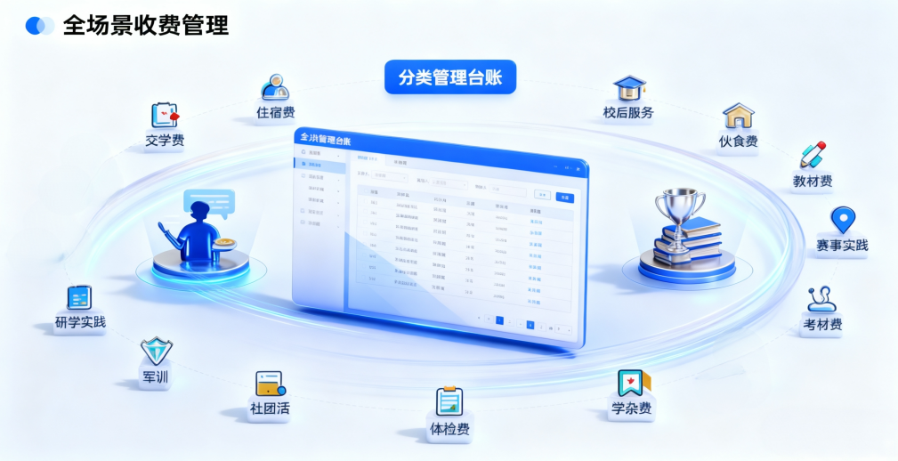 在与学校财务业务深度协同,实现了学生缴费计划自动生成、状态实时同步,构建起“资金-票据-档案”全链路可追溯的数字缴费闭环,财务人工差错率归零。学生欠费催缴、退费审批线上化闭环运转,整体办理周期压缩95%以上,财务人员从单据核对等事务性工作中解放,转向采购预算精准化、师资培训经费效能化、教育资源投入效益化等核心领域,全面升级为支撑学校育人战略的财政管理力量,助力教育数字财政建设落地见效。